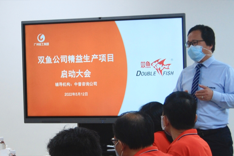2022年5月12日,双鱼体育用品精益管理变革项目大会正式启动。双鱼公司董事长王晓东先生、副总经理梁敏明先生、精益办主任杨镜镣先生,中普咨询总经理余一、项目副总经理王世来、项目经理马小兰、咨询师王照友和双鱼公司各有关部门负责人及项目组成员等参加了启动大会。