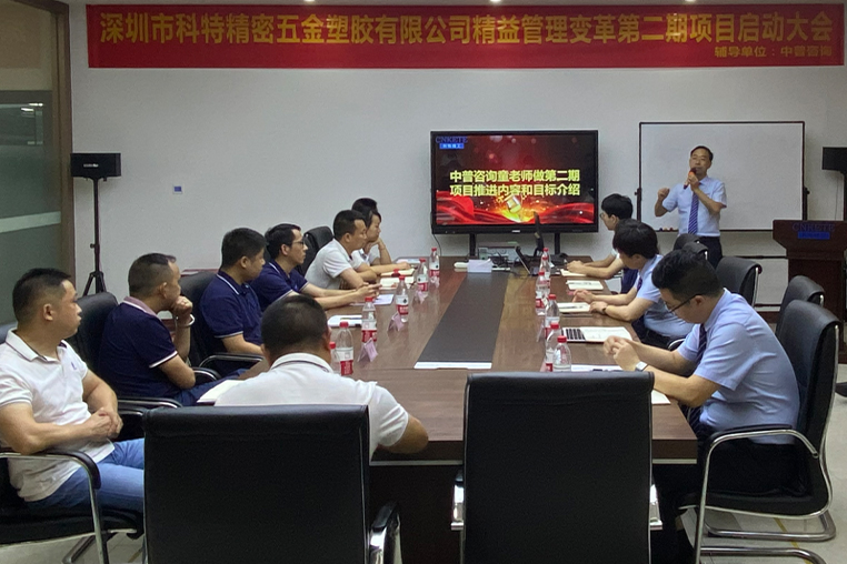 2022年6月16日,科特精益运营二期项目大会正式启动。科特公司总经理肖总、精益办主任王总、冲压区负责人罗恩超、注塑区负责人魏宝林、PMC经理陈启伟,中普咨询副总经理罗泽秋、项目经理邝家春、项目咨询师童秦立和科特公司各有关部门负责人及项目组成员等参加了启动大会。