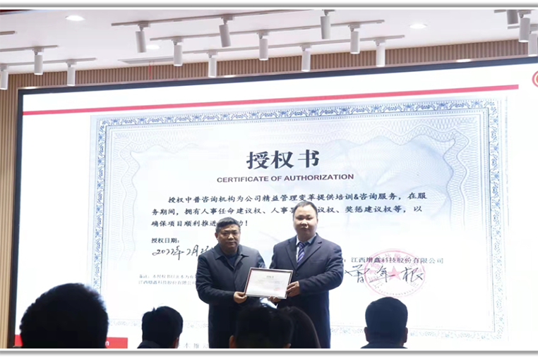 2022年2月23日,江西增鑫科技股份有限公司精益管理变革第三期项目启动。增鑫科技曾总、雷副总,王副总、邓总监、胡总监、杨总监、廖总监,中普咨询增鑫项目经理陈华兵,增鑫科技各有关部门负责人及项目组成员等参加了三期项目启动大会。(会议同时对二期项目进行了总结)。
